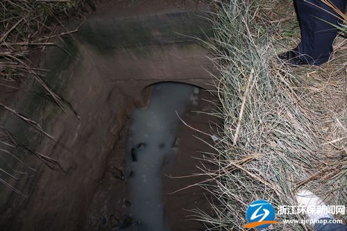 園區西側,一根東西走向、直徑約30厘米的水泥管道內,流動著白色廢水,與海涂邊發現的酸水性狀極為相符。然初步檢測發現,該白色廢水PH值趨近正常,與外排廢水的PH值存在明顯差異。